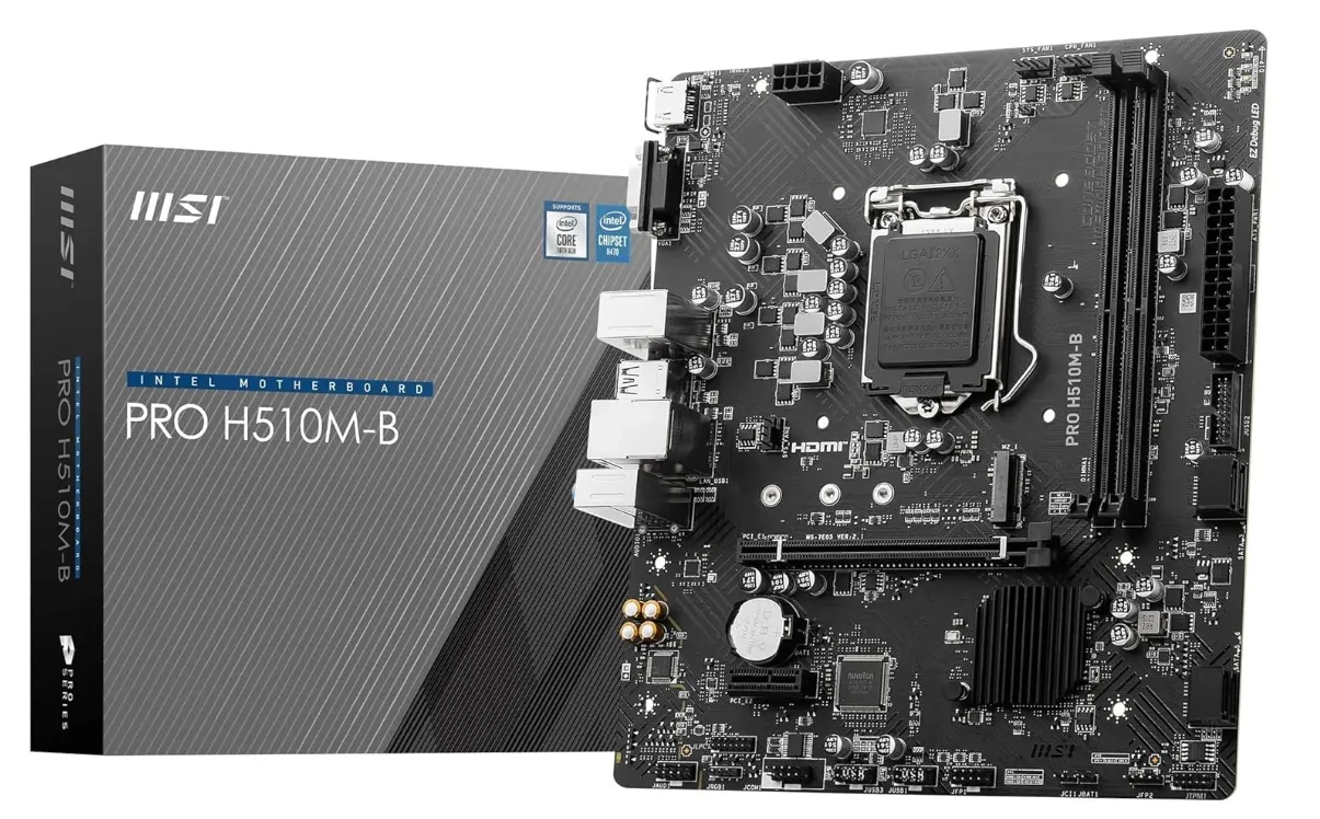 MSI PRO H510M‑B PRO II – micro‑ATX com socket LGA 1200, DDR4 e design compacto — ideal como solução eficiente e econômica para desktops com Intel.